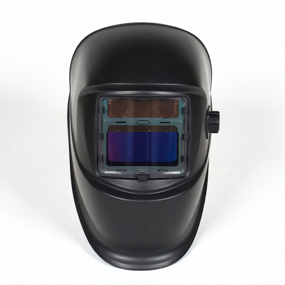 • Variable Shade Range DIN 9–13 — Infinitely adjustable shade control via external rotary dial to match amperage and welding process requirements
