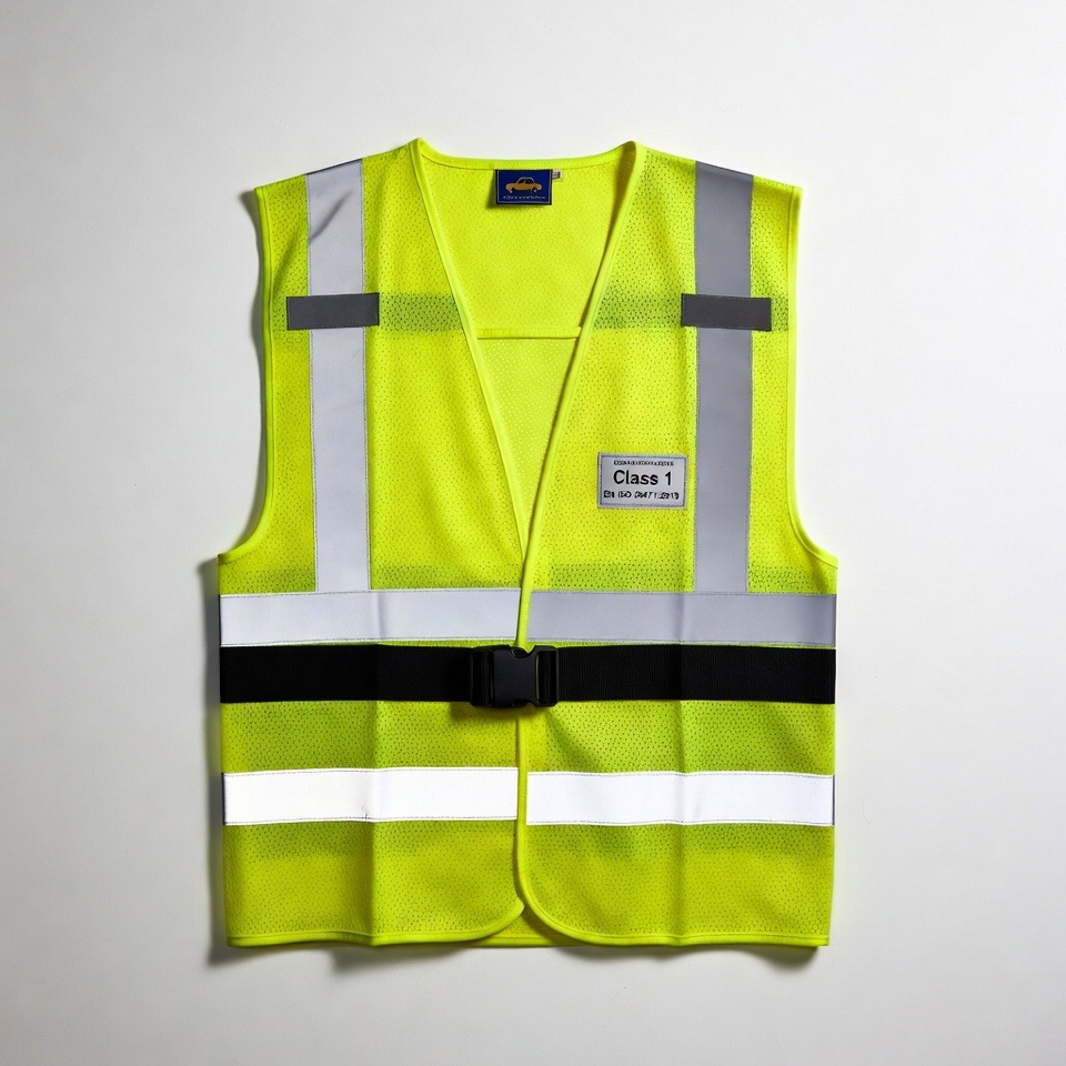 Our EN ISO 20471:2013 Class 1 certified Safety Vests feature a minimum 0.14 m² fluorescent background fabric and 0.10 m² glass bead retroreflective tape — approved in fluorescent yellow, orange, or red — engineered for low-risk visibility applications including indoor logistics, off-road worksites, and slow-traffic environments across the UAE, GCC, Middle East, and Africa where vehicle speeds do not exceed 30 km/h.