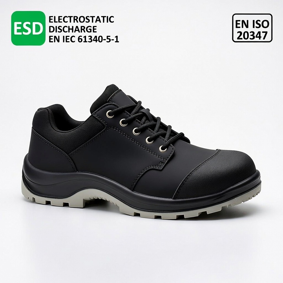 Outsole Material: PU or rubber with conductive additives — ensures consistent dissipation across operating conditions