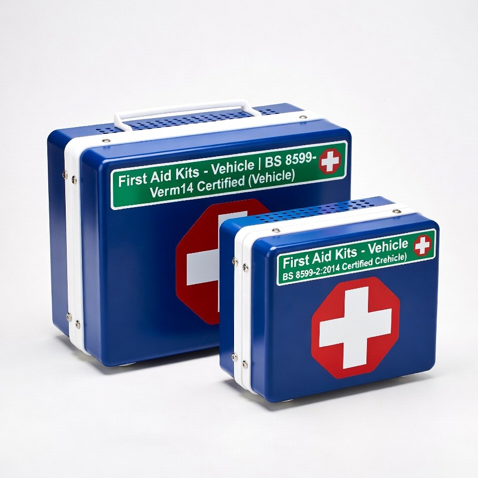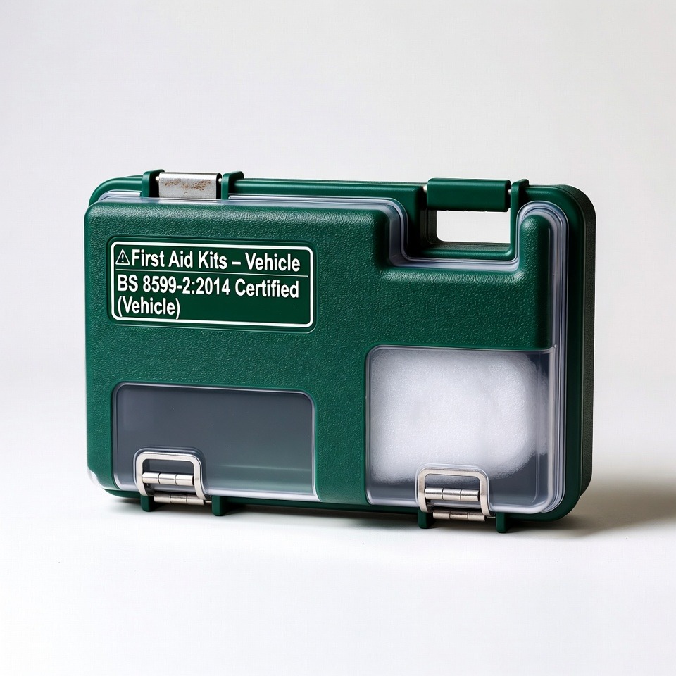 Our BS 8599-2:2014 certified Vehicle First Aid Kit is pre-configured to the motorist kit specification — available in Small, Medium, and Large sizes to accommodate private vehicles, taxis, vans, and commercial fleet vehicles — housed in a water-resistant nylon soft case for secure in-vehicle storage, containing a standardised consumable inventory for immediate roadside emergency response across industrial, logistics, oil & gas, and facilities management fleet operations throughout the UAE, GCC, Middle East, and Africa.