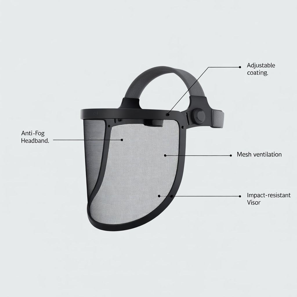 Our EN 1731-certified Mesh Face Shield features a galvanized stainless steel wire mesh visor engineered to deflect large flying particles, wood chips, and debris — delivering inherently fog-free full-face protection for construction, landscaping, vegetation management, and industrial operations across the UAE, GCC, Middle East, and Africa where solid visor fogging is an operational liability. Fully compliant with EN 1731 and applicable regional authority requirements.