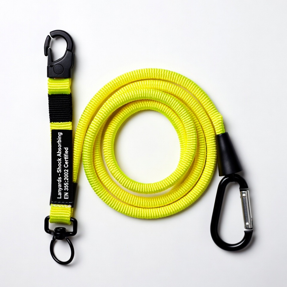 Our EN 355:2002 certified Shock Absorbing Lanyards feature a rip-stitch deceleration pack limiting maximum arrest force to ≤6 kN — drop tested with a 100 kg solid mass over twice the lanyard length with total deployed length not exceeding 1.75 metres — engineered for fall arrest connection between EN 361 full body harnesses and anchorage points across industrial, construction, oil & gas, and facilities management operations throughout the UAE, GCC, Middle East, and Africa.
