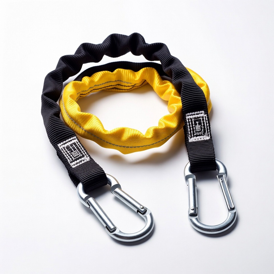 Material: Polyester webbing or kernmantle rope with integrated energy absorber pack