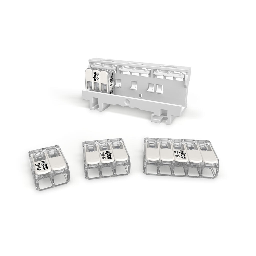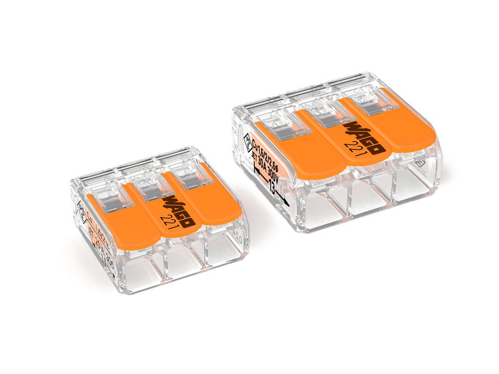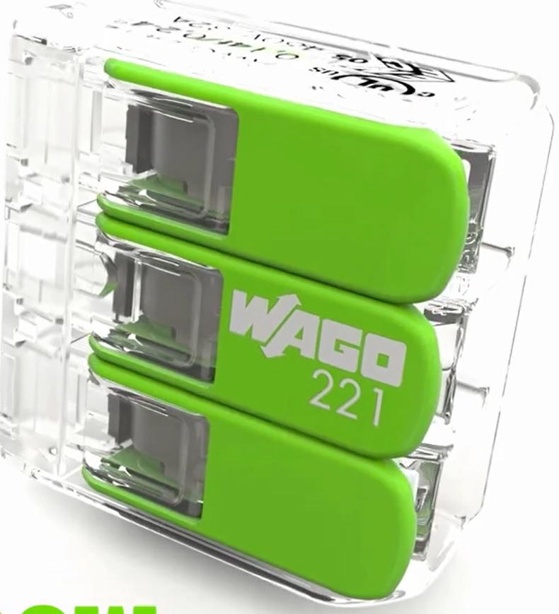 WAGO Connectors are professional-grade, screwless electrical interconnect solutions designed for fast, tool-free wire termination in residential, commercial, and industrial applications. Utilizing patented Push-in CAGE CLAMP® and lever-actuated spring clamp technology, they deliver a gas-tight, vibration-resistant connection without the need for soldering or crimping. Available in 2-, 3-, and 5-conductor configurations, they support solid, stranded, and fine-stranded conductors for maximum versatility.
